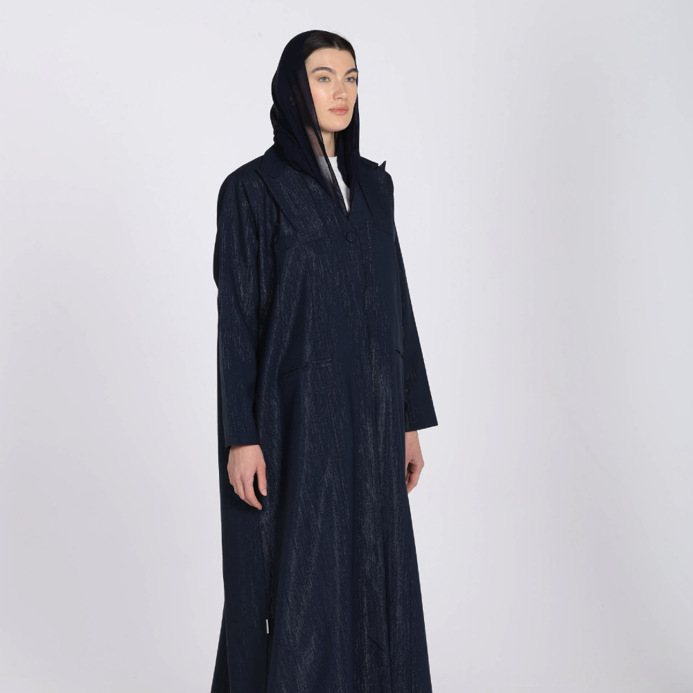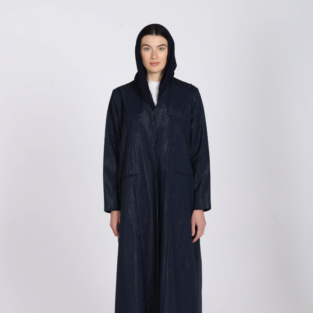 عباية بقصة بليزر أنيقة مصنوعة من قماش الكريب الفاخر بلمعة مميزة تضيف لمسة من الفخامة.